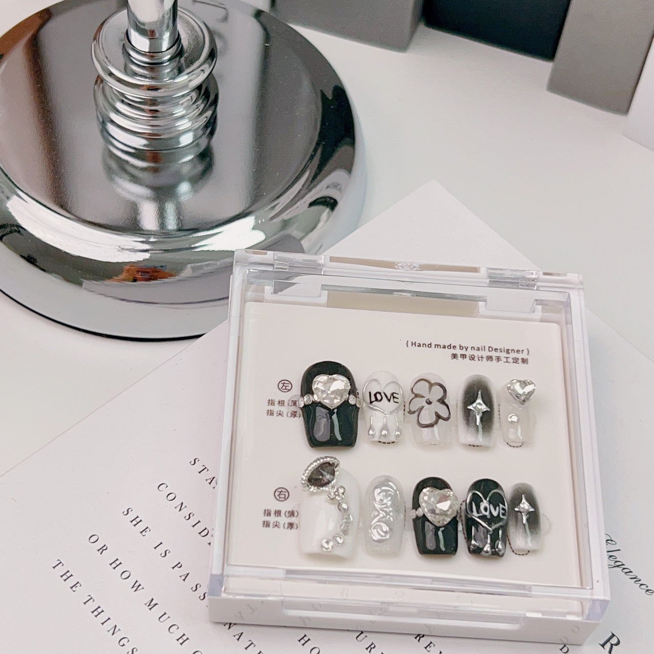 10 nails/Adhesive Tabs/Nail file/Cuticle Stick