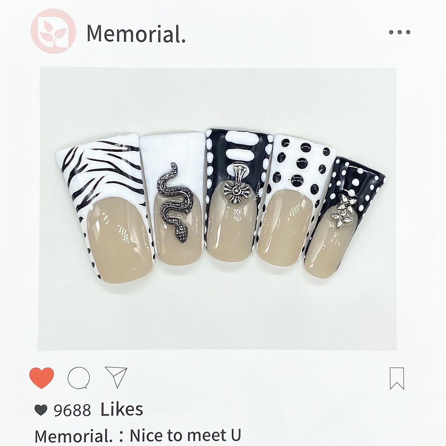 Get ready to celebrate in style with our Duckbill Shape Snake Polka Dot Halloween Press-On Nails! 🐍🎃 These unique press-on nails are perfect for anyone looking to add a spooky yet stylish touch to their Halloween look. The bold duckbill shape provides an edgy flair, while the black polka dots and snake design add a fun yet fierce vibe to your nails. Whether you're looking for high-quality fake nails that are easy to apply or simply want a new set for the Halloween season, these press-on nails will make you stand out at any costume party! Best of all, they're reusable, durable, and give you a salon-quality finish without the hassle of going to a salon. 🎃