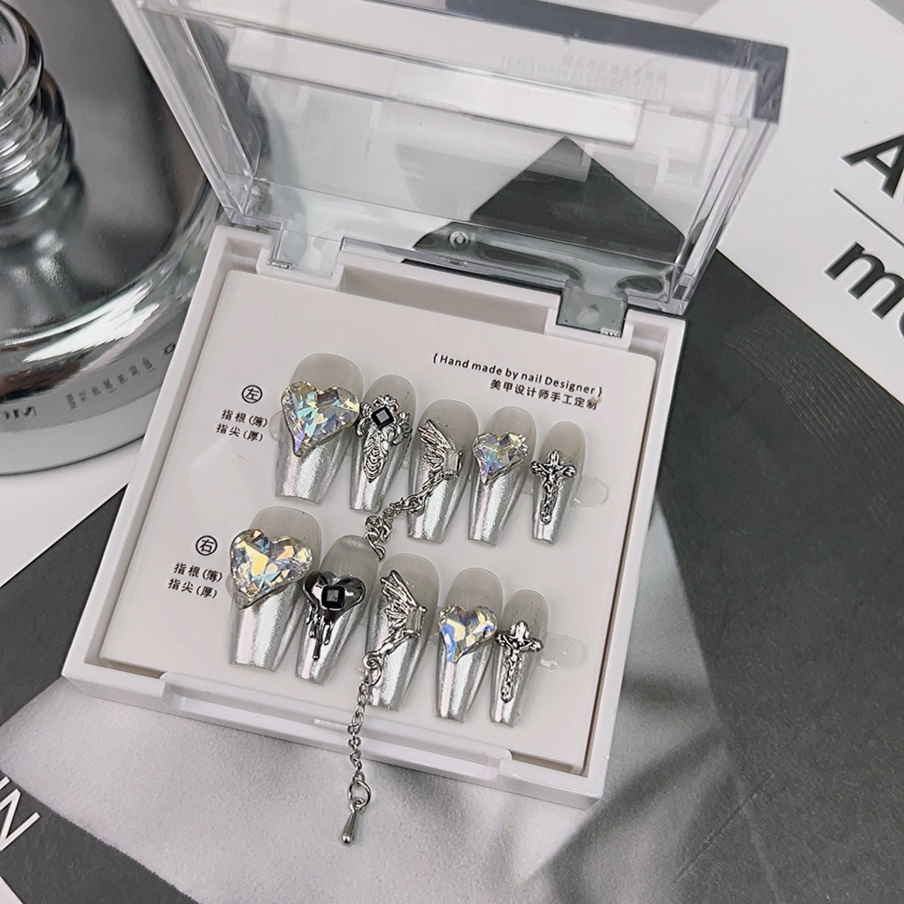 10 nails/Adhesive Tabs/Nail file/Cuticle Stick